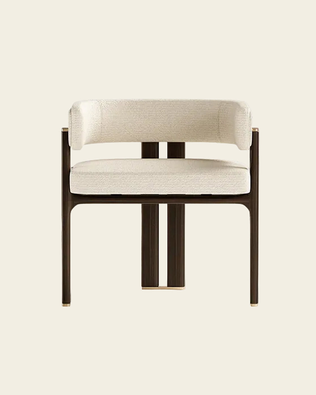 Crafted from richly stained solid wood and premium textured fabric, accented by meticulous brushed brass hardware at the joins and feet.