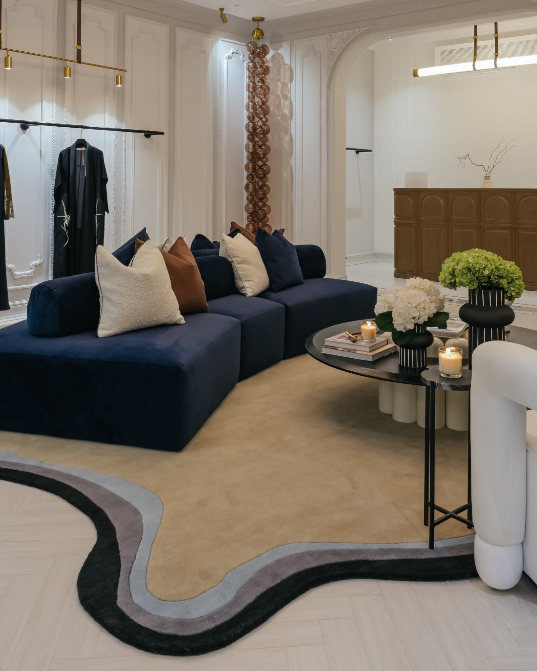 Bring subtle sophistication to your space with the Stone Edge Border Rug. Featuring a soft beige center framed by gently layered borders in white, taupe, and charcoal, this design blends organic flow with modern minimalism. The curved transitions mimic natural stone gradients, creating a calm, grounded aesthetic. Perfect for contemporary homes, lounges, or minimalist interiors seeking warmth without visual clutter.