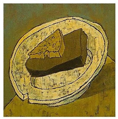 A serene still life artwork depicting a simple table setting with a plate of cake and a cup, rendered in muted, earthy tones. The balanced composition and textured brushwork evoke quiet elegance and calm reflection, making it a timeless addition to living rooms, studies, or curated gallery walls.